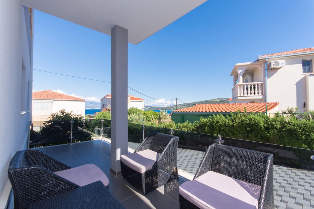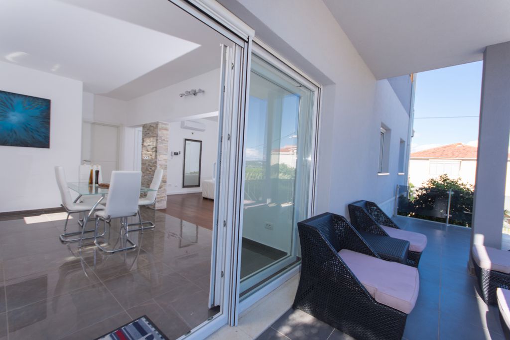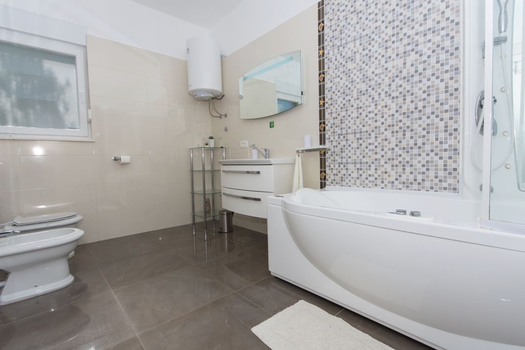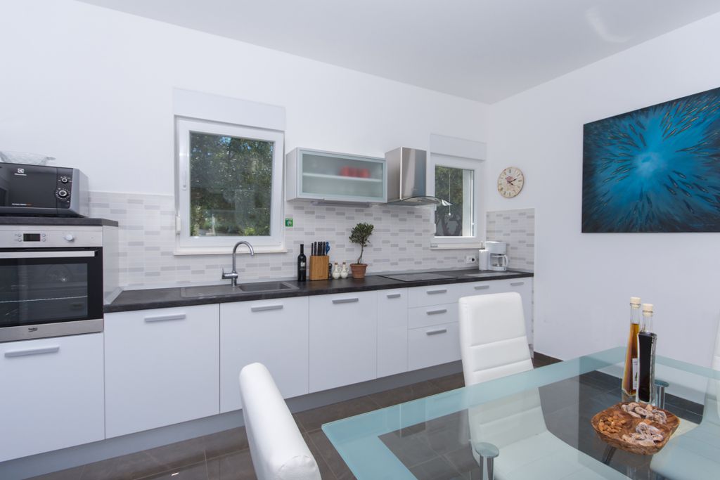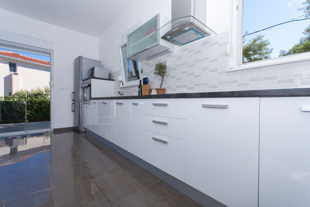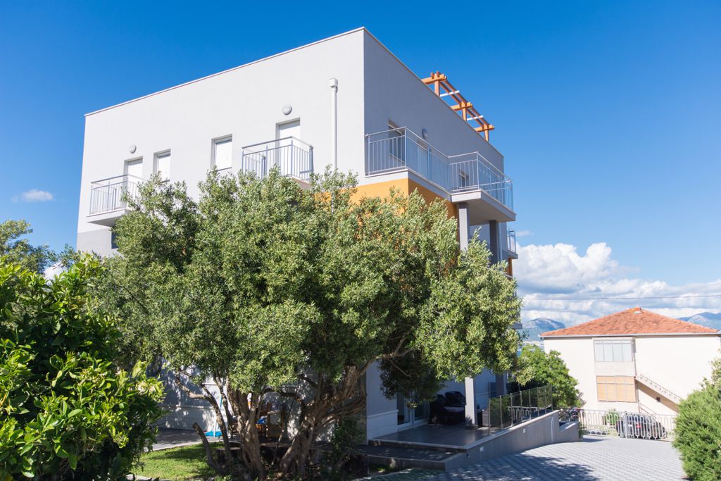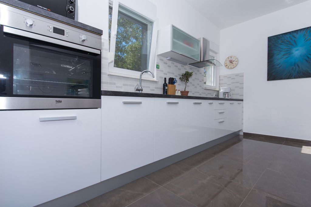 Spacious newly built modern house with 3 apartments (2015) in Slatine on the island Ciovo in a peaceful environment with ancient olive trees. Apartment is luxuriously furnished with beds of solid wood, kitchen with dishwasher, two bathrooms, one with jacuzzi.