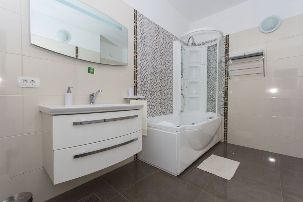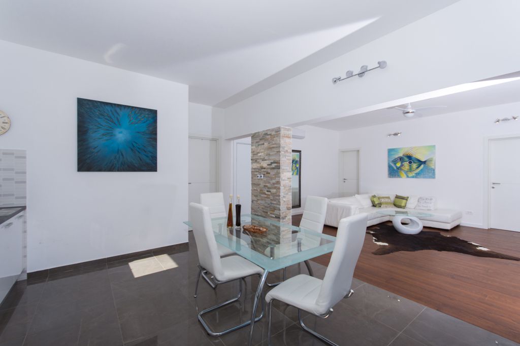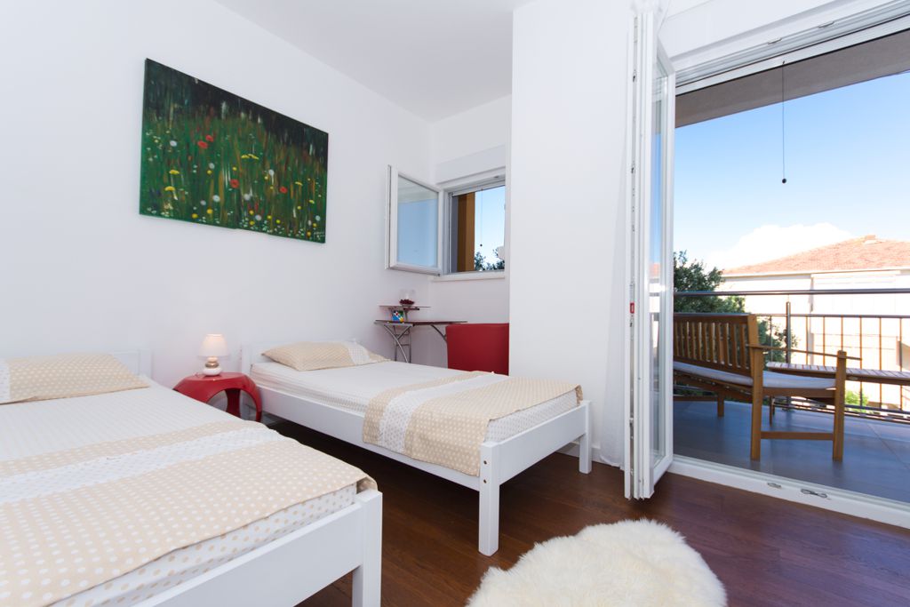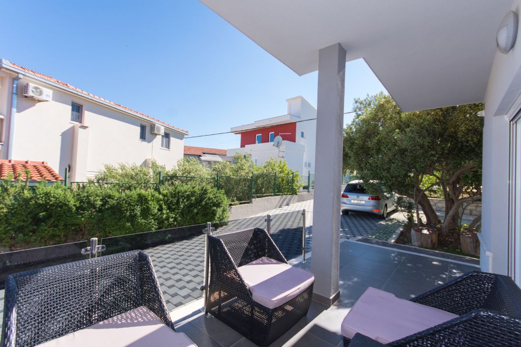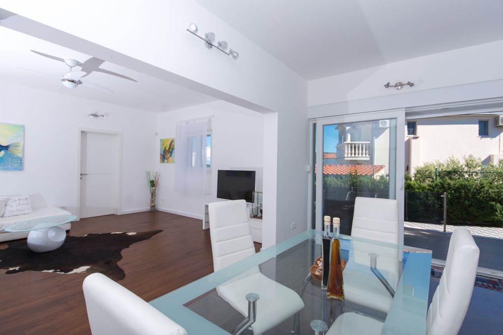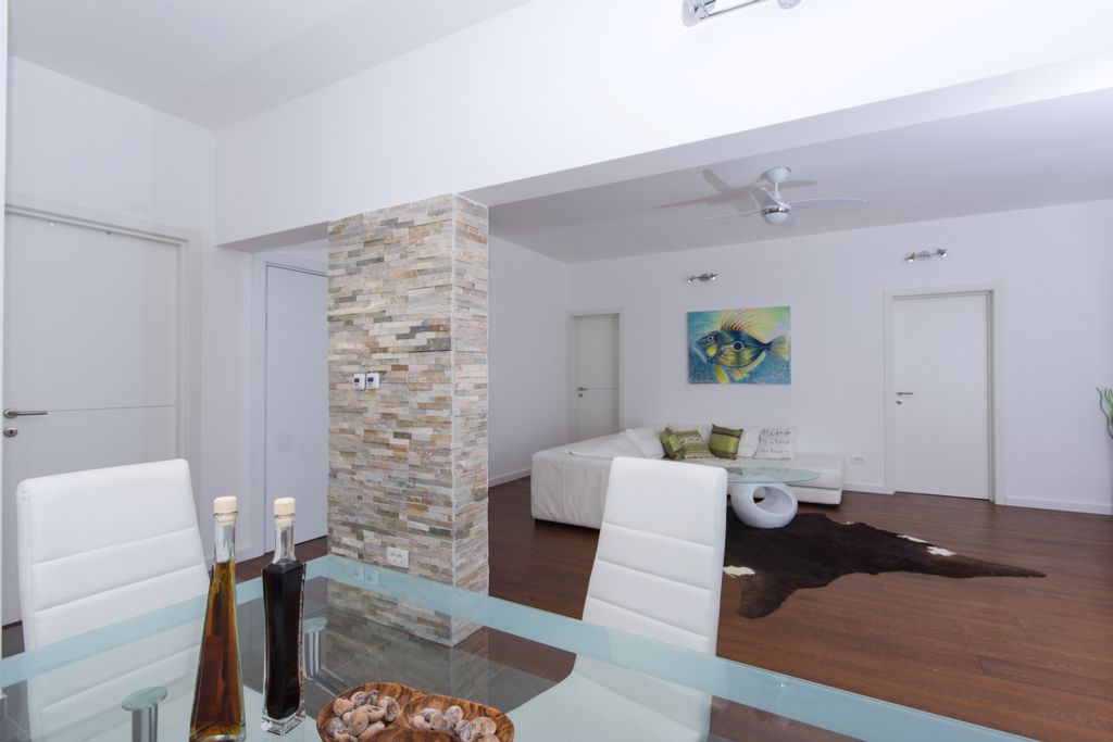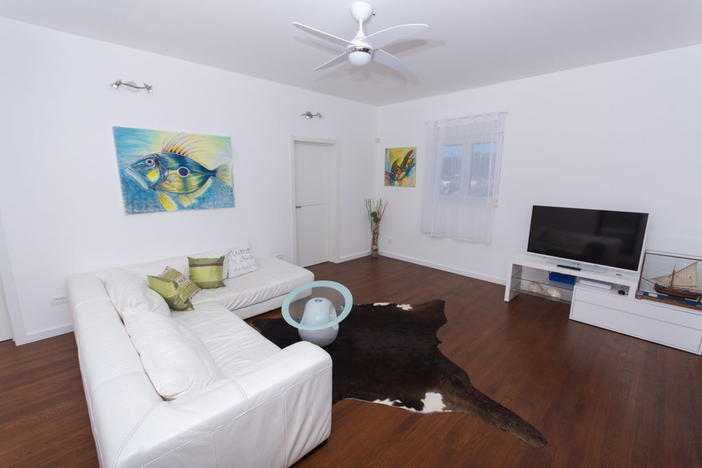 Spacious newly built modern house with 3 apartments (2015) in Slatine on the island Ciovo in a peaceful environment with ancient olive trees. Apartment is luxuriously furnished with beds of solid wood, kitchen with dishwasher, two bathrooms, one with jacuzzi.